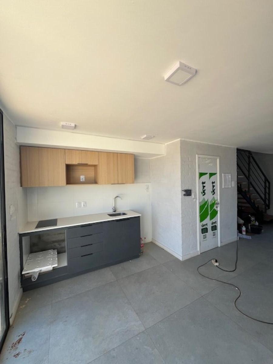 Duplex a estrenar en P.A. 2 dormitorios con placares y baño , balcón al frente , P.B.: living-cocina comedor, baño de serv., box para lavadero , patio , lugar para cochera al frente .